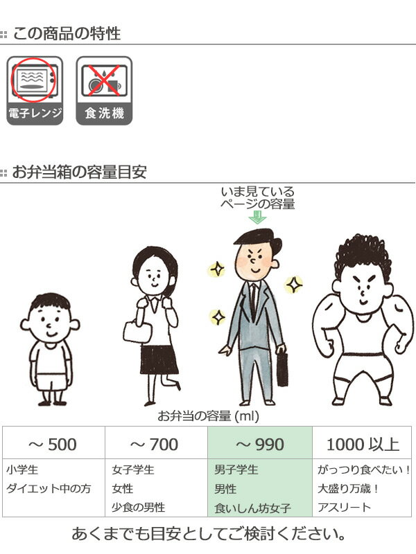大容量サイズでご飯もおかずもたっぷり入るので、ガッツリ食べたい方におすすめのお弁当箱です。