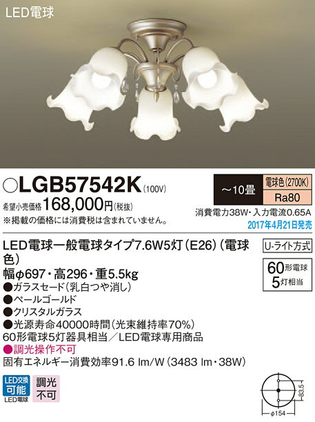LGB57542K パナソニック クリスタルガラス 直付シャンデリア [LED電球色][〜10畳]