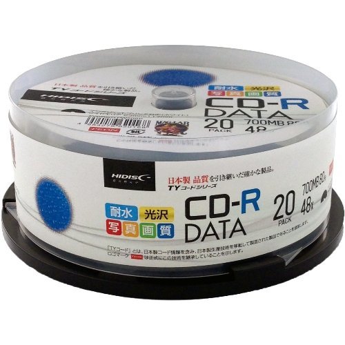 CD-R データ用 HI-DISC ハイディスク TYコードシリーズ 700MB 48倍速 20枚スピンドル 写真画質 光沢 ウォーターシールド ホワイトワイドプリンタブル TYCR80YPW20SP ◆宅